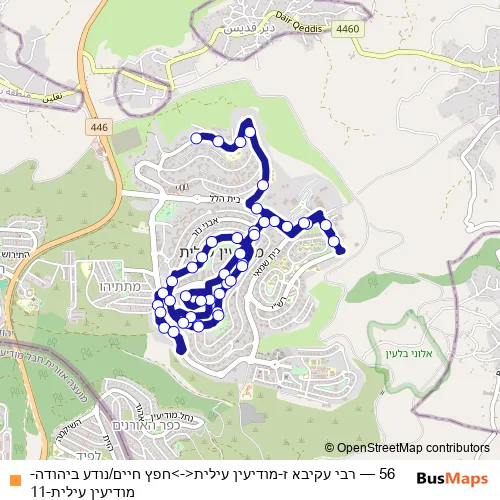 Bus 56 - רבי עקיבא ז-מודיעין עילית<->חפץ חיים/נודע ביהודה-מודיעין עילית-11 Schedule in Modiin Ilit