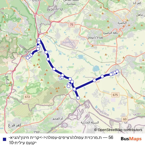 Click here to view the nearest 56 - ת.מרכזית עפולה/רציפים-עפולה<->קרית חינוך/הגיא-יקנעם עילית-10 bus stop.