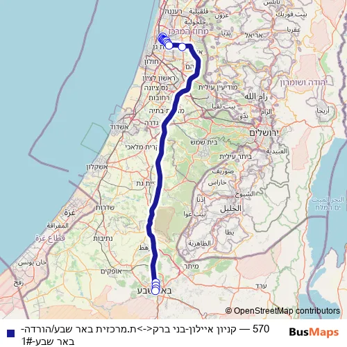 Bus 570 - קניון איילון-בני ברק<->ת.מרכזית באר שבע/הורדה-באר שבע-1#: Full Schedule in Tel Aviv
