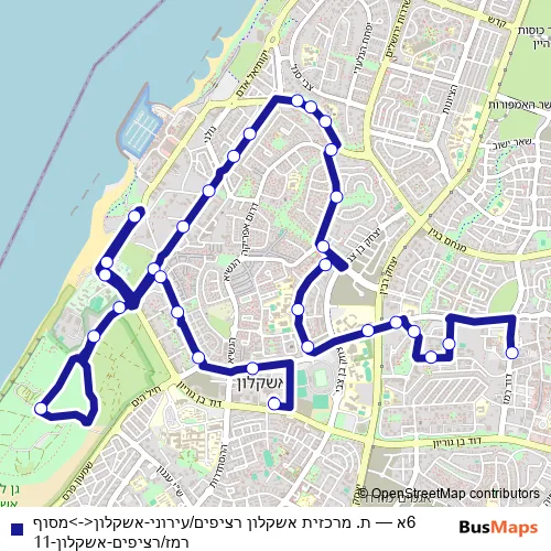 Click here to view the nearest 6א - ת. מרכזית אשקלון רציפים/עירוני-אשקלון<->מסוף רמז/רציפים-אשקלון-11 bus stop.