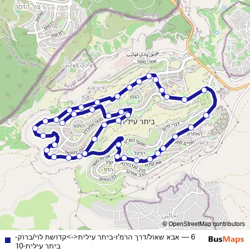 Bus 6 - אבא שאול/דרך הרמ'ז-ביתר עילית<->קדושת לוי/ברוק-ביתר עילית-10 Schedule in Jerusalem