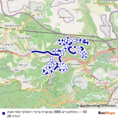 The first stop of the 60 bus route is בזלת/כביש 3965 and the last stop is מחלף חמד. 60 (בזלת/כביש 3965-מבשרת ציון<->מחלף חמד-מטה יהודה-2#) is operational during כל יום.