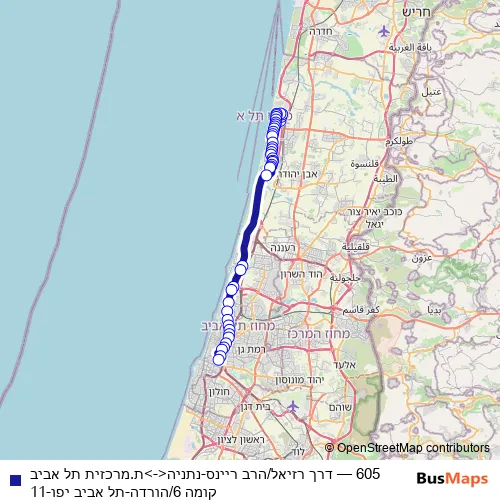 מטרופולין 605 דרך רזיאל/הרב ריינס-נתניה<->ת.מרכזית תל אביב קומה 6/הורדה-תל אביב יפו-11 Bus
