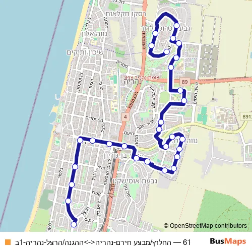 61 (החלוץ/מבצע חירם-נהריה<->ההגנה/הרצל-נהריה-1ב) Bus in Nahariyya
