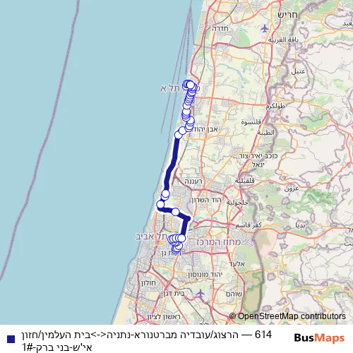 Bus 614 - הרצוג/עובדיה מברטנורא-נתניה<->בית העלמין/חזון אי'ש-בני ברק-1# in Tel Aviv: Stops & Timetable