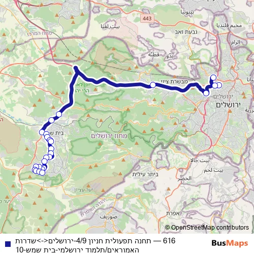 Bus 616 - תחנה תפעולית חניון 4/9-ירושלים<->שדרות האמוראים/תלמוד ירושלמי-בית שמש-10: Full Schedule in Jerusalem