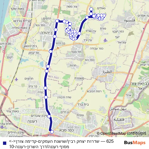 Bus 625 - שדרות יצחק רבין/שושנת העמקים-קדימה צורן<->מסוף רעננה/דרך השרון-רעננה-10 in Kadima Zoran: Stops & Timetable
