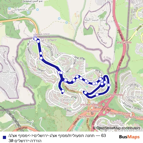 Bus 63 - תחנה תפעולית/מסוף אצ'ג-ירושלים<->מסוף אצ'ג/הורדה-ירושלים-3# in Jerusalem: Stops & Timetable