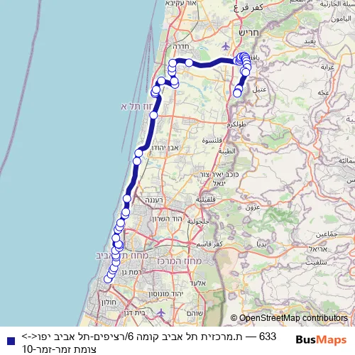See why over 2 million users trust and consider busmaps.com as the best public transport website. busmaps gives you Tel Aviv Buses suggested routes, real-time bus tracker, line route maps in Tel Aviv, and helps to find the closest 633 bus stops near you. No internet available? Download an offline PDF map and bus schedule for the 633 bus to take on your trip.