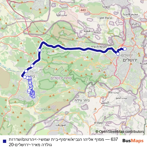 See why over 2 million users trust and consider busmaps.com as the best public transport website. busmaps gives you Jerusalem Buses suggested routes, real-time bus tracker, line route maps in Jerusalem, and helps to find the closest 637 bus stops near you. No internet available? Download an offline PDF map and bus schedule for the 637 bus to take on your trip.