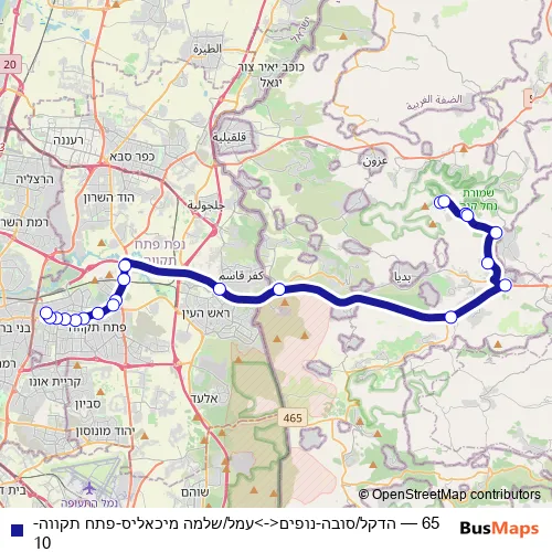 Bus 65 - הדקל/סובה-נופים<->עמל/שלמה מיכאליס-פתח תקווה-10 Schedule in Tel Aviv