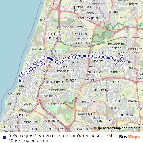 Bus 66 - ת. מרכזית פ'ת/רציפים-פתח תקווה<->מסוף כרמלית/הורדה-תל אביב יפו-10: Full Schedule in Tel Aviv