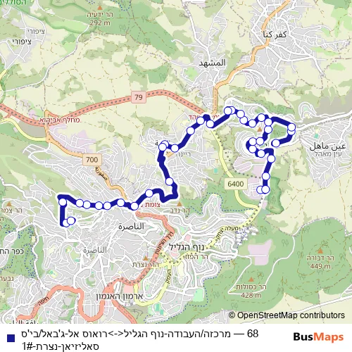 Bus 68 - מרכזה/העבודה-נוף הגליל<->רואוס אל-ג'באל/בי'ס סאליזיאן-נצרת-1#: Full Schedule in Nazareth