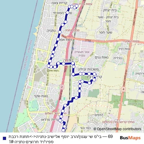 See why over 2 million users trust and consider busmaps.com as the best public transport website. busmaps gives you Netanya Buses suggested routes, real-time bus tracker, line route maps in Netanya, and helps to find the closest 69 bus stops near you. No internet available? Download an offline PDF map and bus schedule for the 69 bus to take on your trip.