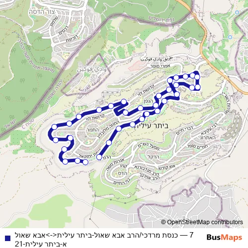 Bus 7 - כנסת מרדכי/הרב אבא שאול-ביתר עילית<->אבא שאול א-ביתר עילית-21 in Jerusalem: Stops & Timetable