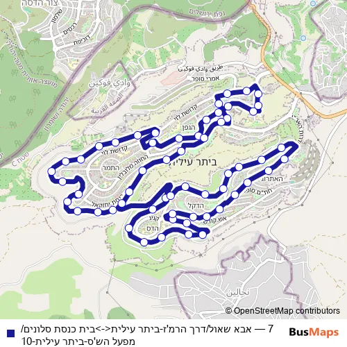 Bus 7 - אבא שאול/דרך הרמ'ז-ביתר עילית<->בית כנסת סלונים/מפעל הש'ס-ביתר עילית-10 Schedule in Jerusalem