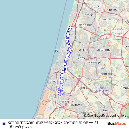 See why over 2 million users trust and consider busmaps.com as the best public transport website. busmaps gives you Tel Aviv Buses suggested routes, real-time bus tracker, line route maps in Tel Aviv, and helps to find the closest 71 bus stops near you. No internet available? Download an offline PDF map and bus schedule for the 71 bus to take on your trip.