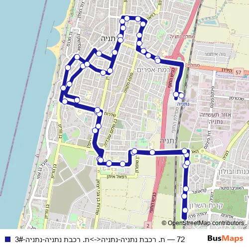 Bus 72 - ת. רכבת נתניה-נתניה<->ת. רכבת נתניה-נתניה-3# Schedule in Netanya