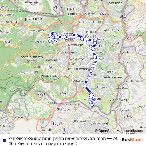 Bus 74 - תחנה תפעולית/היציאה מחניון חומת שמואל-ירושלים<->מסוף הר נוף/כנפי נשרים-ירושלים-10: Full Schedule in Jerusalem