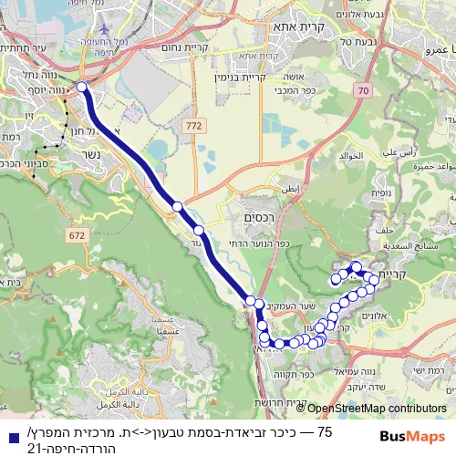 סופרבוס 75 כיכר זביאדת-בסמת טבעון<->ת. מרכזית המפרץ/הורדה-חיפה-21 Bus