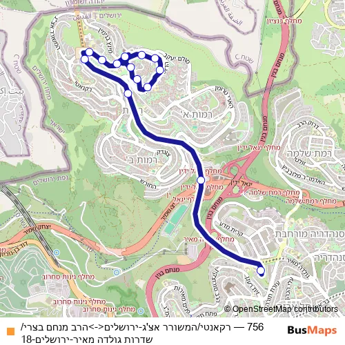 Click here to view the nearest 756 - רקאנטי/המשורר אצ'ג-ירושלים<->הרב מנחם בצרי/שדרות גולדה מאיר-ירושלים-18 bus stop.