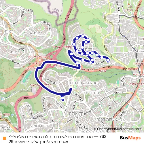 Bus 763 - הרב מנחם בצרי/שדרות גולדה מאיר-ירושלים<->אגרות משה/חזון אי'ש-ירושלים-29 Schedule in Jerusalem