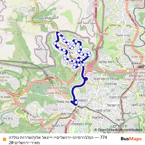 Bus 774 - המ'ג/ירמיהו-ירושלים<->יגאל אלון/שדרות גולדה מאיר-ירושלים-2# in Jerusalem: Stops & Timetable
