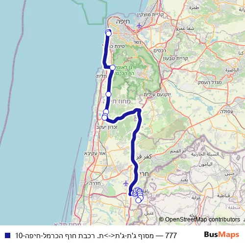 קווים 777 מסוף ג'ת-ג'ת<->ת. רכבת חוף הכרמל-חיפה-10 Bus