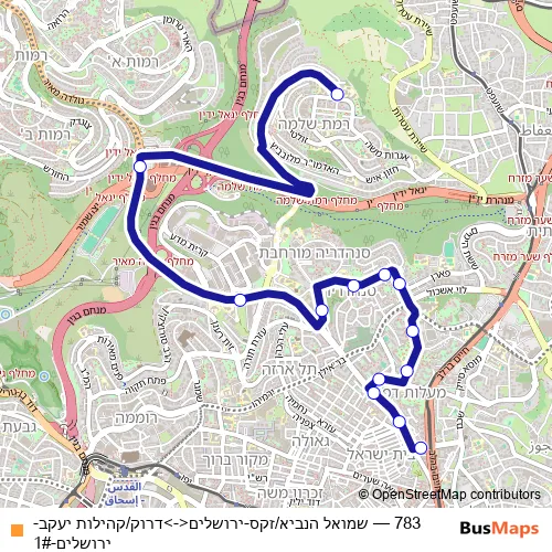 Bus 783 - שמואל הנביא/זקס-ירושלים<->דרוק/קהילות יעקב-ירושלים-1#: Full Schedule in Jerusalem