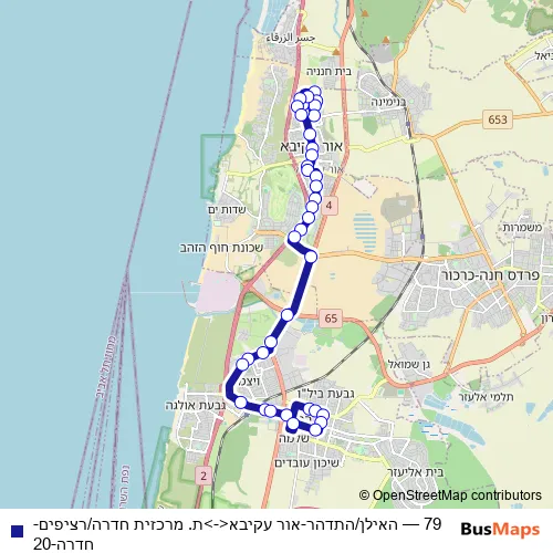Bus 79 - האילן/התדהר-אור עקיבא<->ת. מרכזית חדרה/רציפים-חדרה-20 Schedule in Hadera