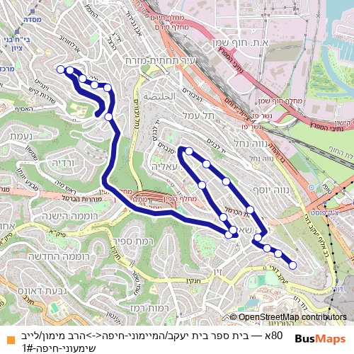 Click here to view the nearest 80א - בית ספר בית יעקב/המיימוני-חיפה<->הרב מימון/לייב שימעוני-חיפה-1# bus stop.