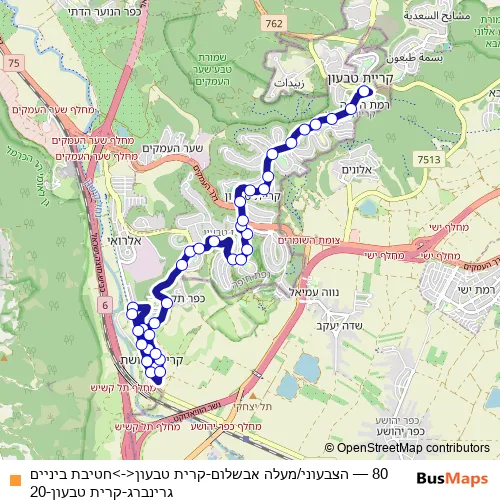 Click here to view the nearest 80 - הצבעוני/מעלה אבשלום-קרית טבעון<->חטיבת ביניים גרינברג-קרית טבעון-20 bus stop.
