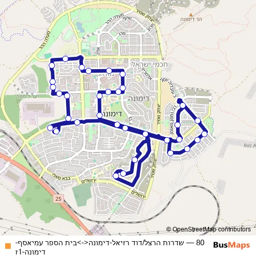 Bus 80 - שדרות הרצל/דוד רזיאל-דימונה<->בית הספר עמיאסף-דימונה-1ז: Full Schedule in Dimona