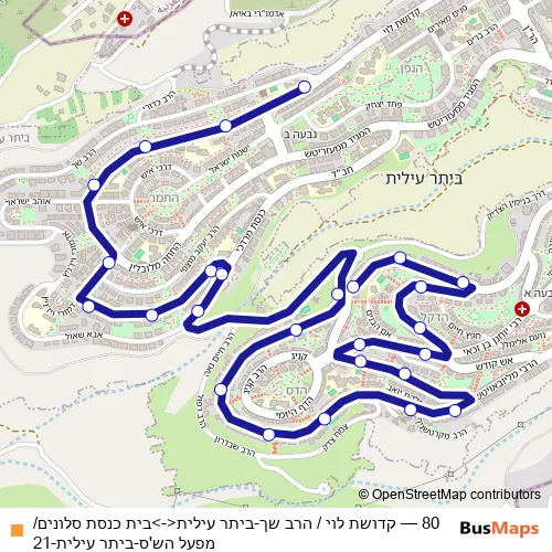 Click here to view the nearest 80 - קדושת לוי / הרב שך-ביתר עילית<->בית כנסת סלונים/מפעל הש'ס-ביתר עילית-21 bus stop.