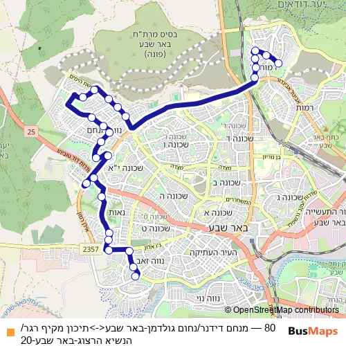 Bus 80 - מנחם דידנר/נחום גולדמן-באר שבע<->תיכון מקיף רגר/הנשיא הרצוג-באר שבע-20: Full Schedule in Beersheba