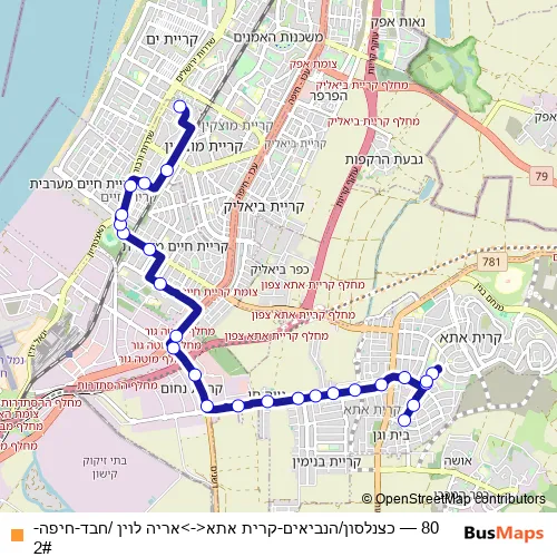 Click here to view the nearest 80 - כצנלסון/הנביאים-קרית אתא<->אריה לוין /חבד-חיפה-2# bus stop.