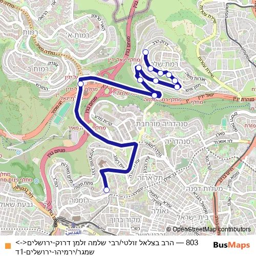 See why over 2 million users trust and consider busmaps.com as the best public transport website. busmaps gives you Jerusalem Buses suggested routes, real-time bus tracker, line route maps in Jerusalem, and helps to find the closest 803 bus stops near you. No internet available? Download an offline PDF map and bus schedule for the 803 bus to take on your trip.