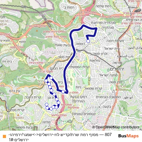 Bus 807 - מסוף רמת שרת/קדיש לוז-ירושלים<->שמגר/ירמיהו-ירושלים-1#: Full Schedule in Jerusalem