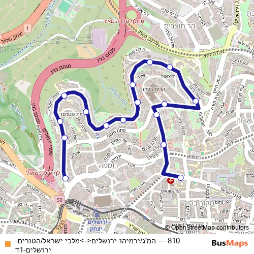 Click here to view the nearest 810 - המ'ג/ירמיהו-ירושלים<->מלכי ישראל/הטורים-ירושלים-1ד bus stop.