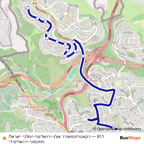 Bus 811 - רקאנטי/המשורר אצ'ג-ירושלים<->מלכי ישראל/תחכמוני-ירושלים-1י in Jerusalem: Stops & Timetable