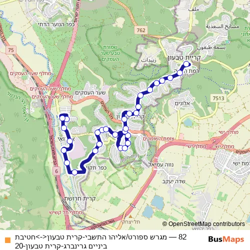 Bus 82 - מגרש ספורט/אליהו התשבי-קרית טבעון<->חטיבת ביניים גרינברג-קרית טבעון-20 in Qiryat Tiv'on: Stops & Timetable