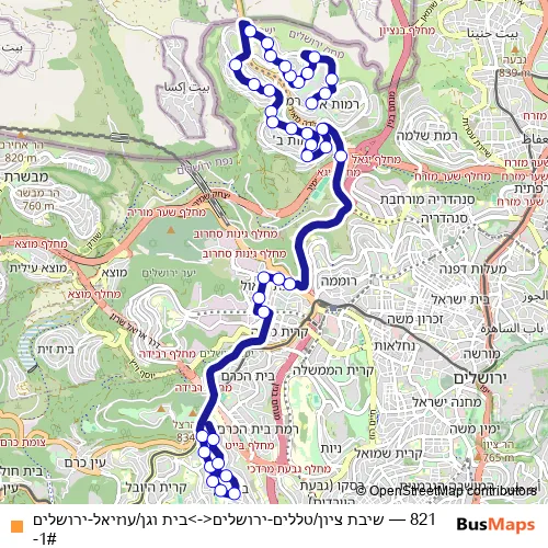 Click here to view the nearest 821 - שיבת ציון/טללים-ירושלים<->בית וגן/עוזיאל-ירושלים-1# bus stop.