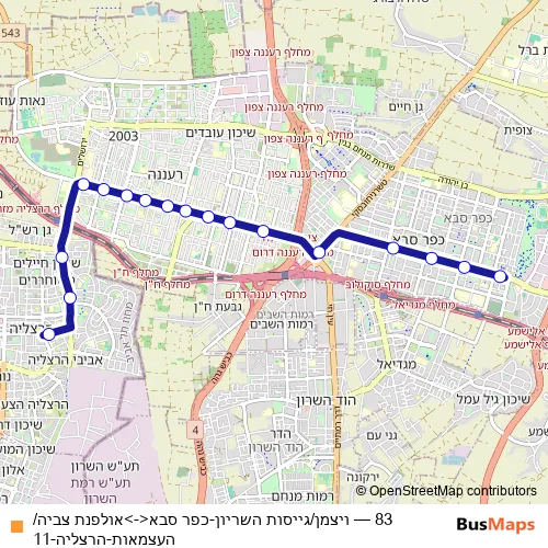 Bus 83 - ויצמן/גייסות השריון-כפר סבא<->אולפנת צביה/העצמאות-הרצליה-11: Full Schedule in Tel Aviv