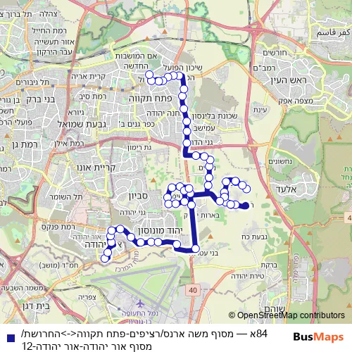 Bus 84א - מסוף משה ארנס/רציפים-פתח תקווה<->החרושת/מסוף אור יהודה-אור יהודה-12 Schedule in Tel Aviv