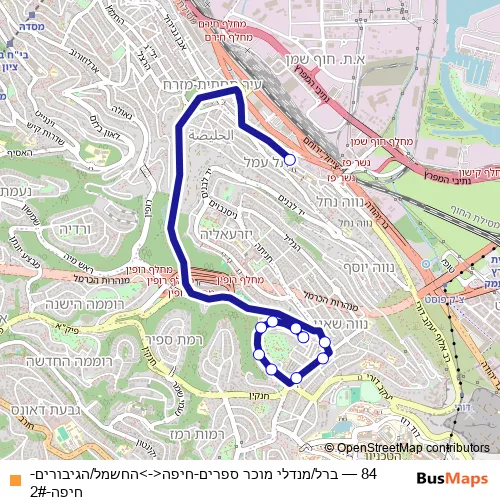 See why over 2 million users trust and consider busmaps.com as the best public transport website. busmaps gives you Haifa Buses suggested routes, real-time bus tracker, line route maps in Haifa, and helps to find the closest 84 bus stops near you. No internet available? Download an offline PDF map and bus schedule for the 84 bus to take on your trip.