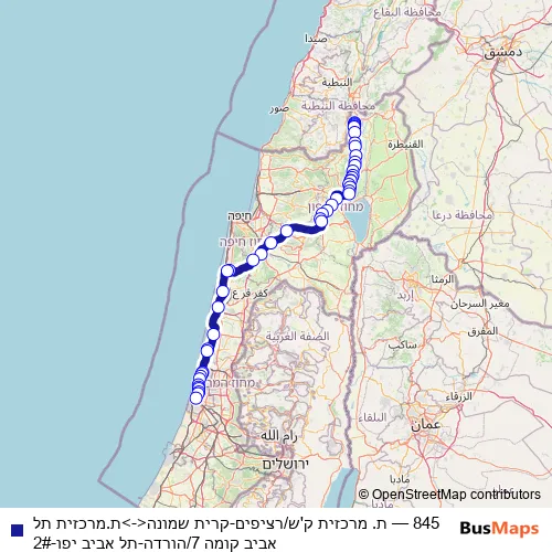 Bus 845 - ת. מרכזית ק'ש/רציפים-קרית שמונה<->ת.מרכזית תל אביב קומה 7/הורדה-תל אביב יפו-2#: Full Schedule in Tel Aviv