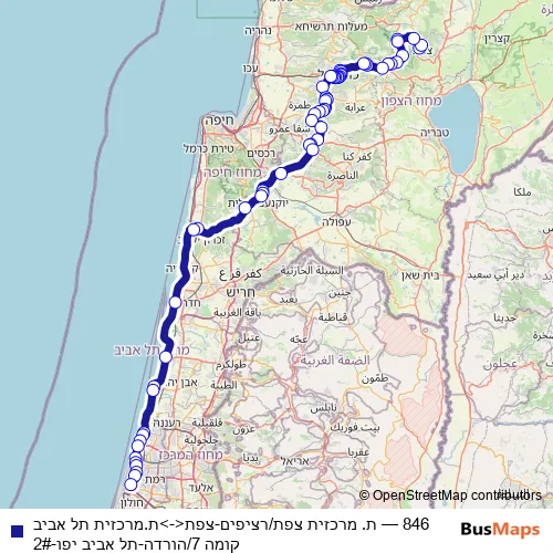 Click here to view the nearest 846 - ת. מרכזית צפת/רציפים-צפת<->ת.מרכזית תל אביב קומה 7/הורדה-תל אביב יפו-2# bus stop.