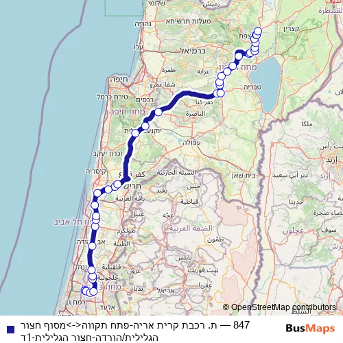 Click here to view the nearest 847 - ת. רכבת קרית אריה-פתח תקווה<->מסוף חצור הגלילית/הורדה-חצור הגלילית-1ד bus stop.