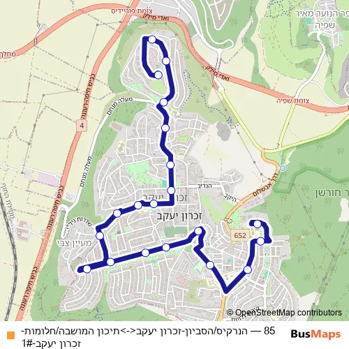Bus 85 - הנרקיס/הסביון-זכרון יעקב<->תיכון המושבה/חלומות-זכרון יעקב-1#: Full Schedule in Zikhron Ya'aqov