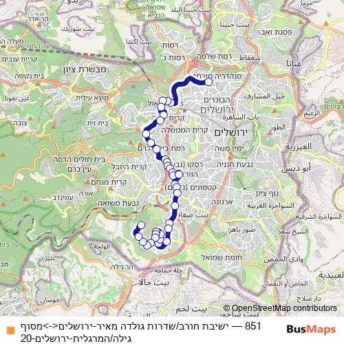 Bus 851 - ישיבת חורב/שדרות גולדה מאיר-ירושלים<->מסוף גילה/המרגלית-ירושלים-20: Full Schedule in Jerusalem